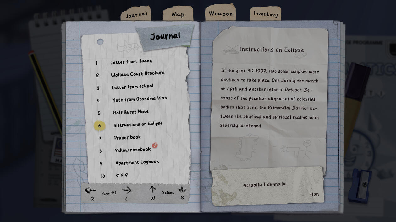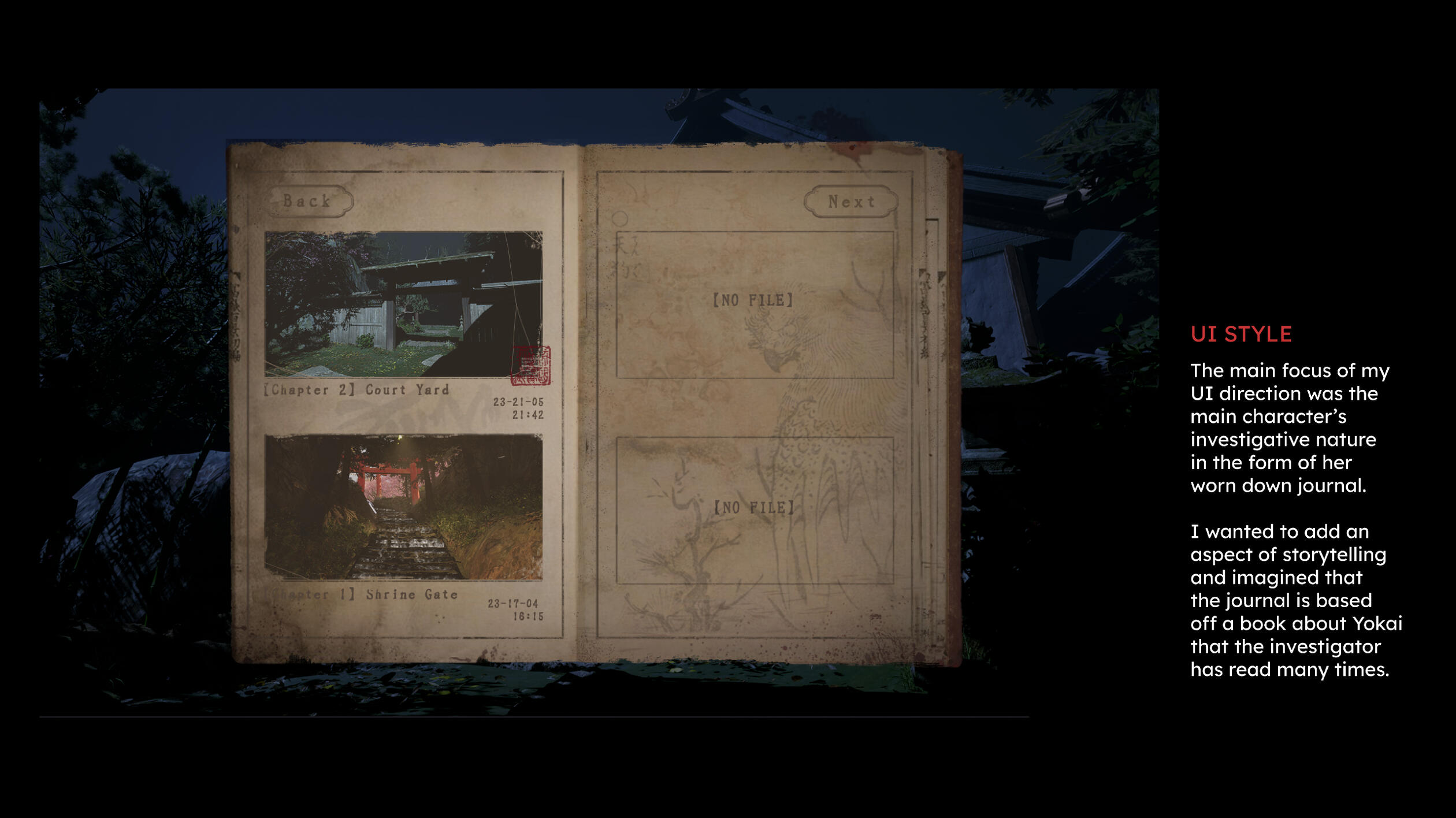The main challenge was to create two separate UIs for each coop player to visualize their distinct personalities. This was shown through the journal and organization of their notes.