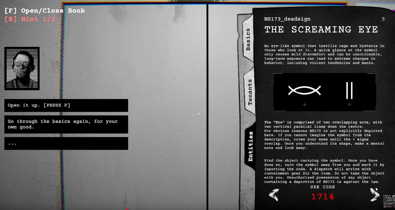 !! Subject matter contains mild depictions of blood, violence, self-harm.A hidden object game set in a 90s brutalist apartment complex.You are an investigator tasked with finding the paranormal entities that have been driving the tenants insane.Carefully read through the handbook, look through the apartment for the entity matching the description. Mark the correct item with the correct code. Follow procedure, do your job.This game was created for the Scream Jam 2024 in 7 daysScream Zone's gHost's Choice winner.